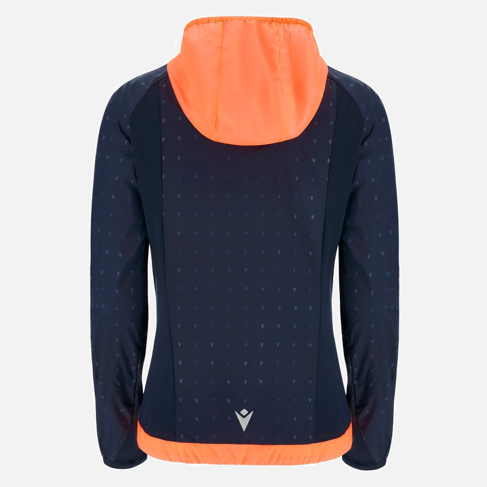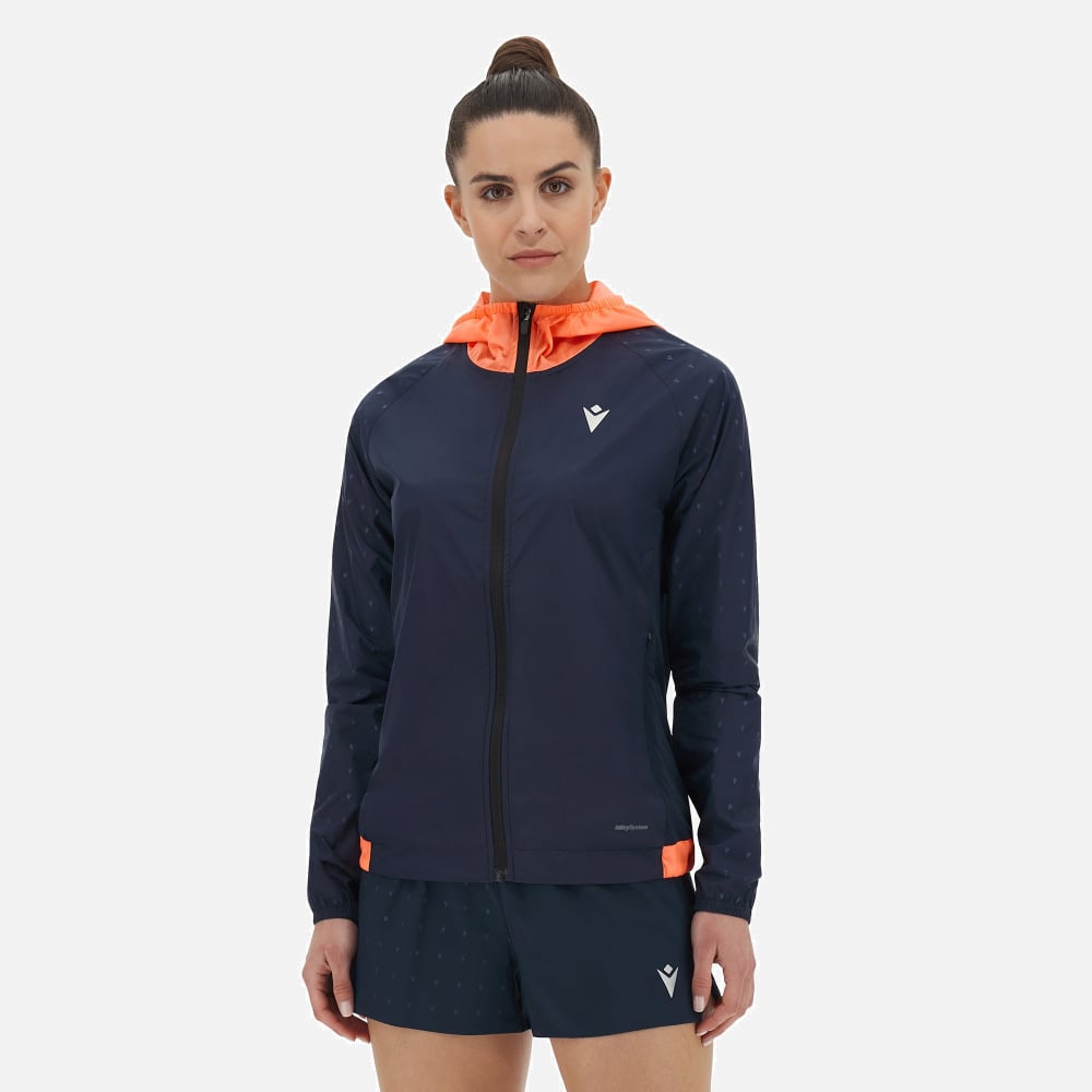 Unleash your athletic spirit and challenge any adverse weather conditions with the Alizee women's windbreaker jacket. Crafted from ultra-lightweight W-Break light fabric, it protects you from the wind without compromising breathability. Mesh inserts and the back ensure continuous ventilation, keeping the body cool and dry. The reflective print on both the front and the back provides safety even during the darkest hours of the day. The functionality of this garment is encapsulated in two pockets with invisible zippers, perfect for securing your most precious items during every training session. An essential piece for evening runs or early morning workouts. The model pictured is 1.77 m tall and wears a size M.