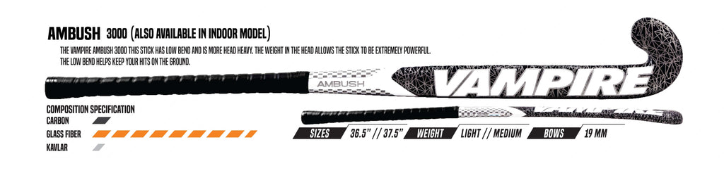 Introducing the Vampire Ambush 3000 – a stick with a low bow and a substantial head weight. The added weight in the head enhances the stick's power, making it an extremely potent choice on the field.