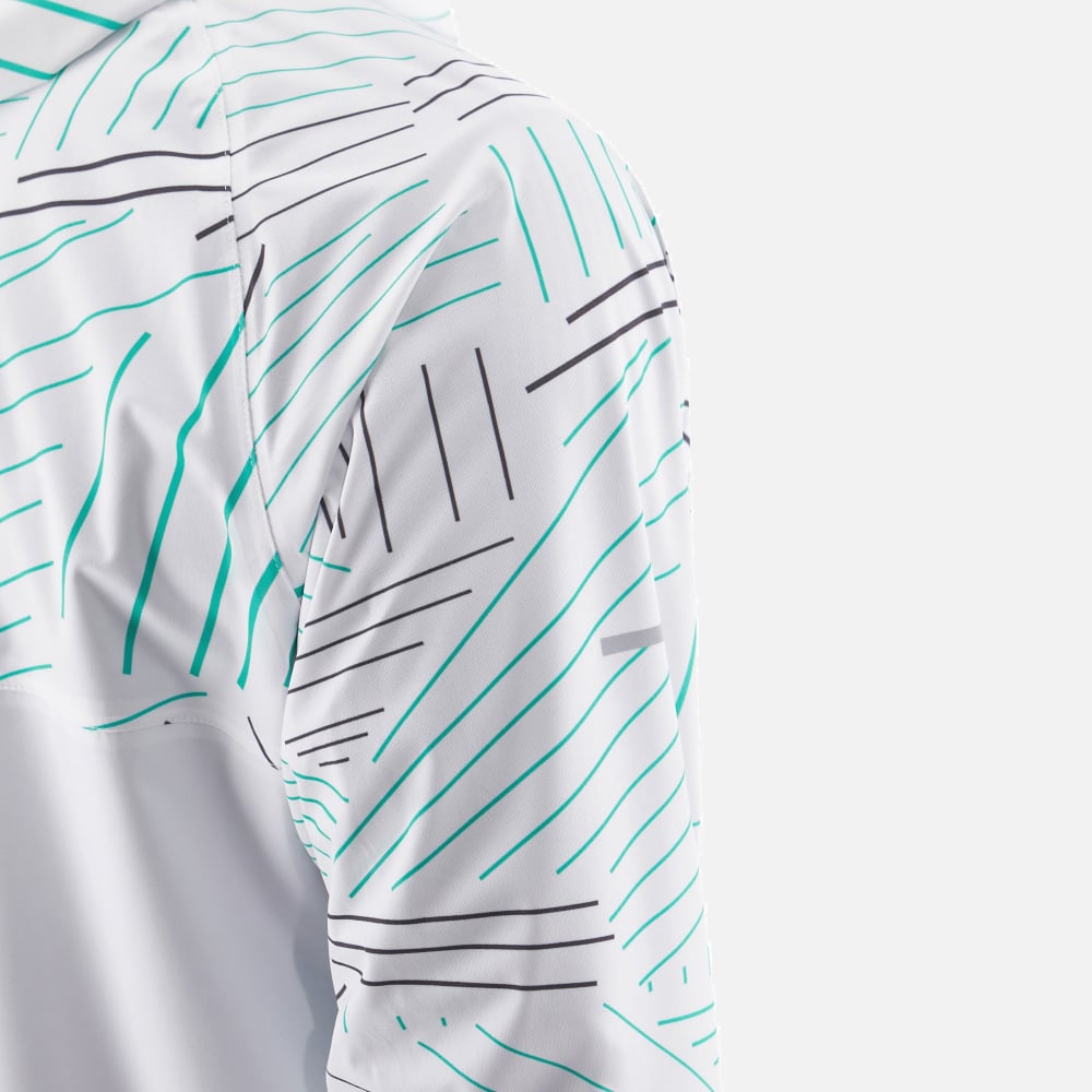 High-tech fabric treated with a water-resistant coating (water column > 10,000 mm | Hydrostatic Head EN 20811:1992). Ideal for training jackets and tops to maximise performance even in bad weather conditions.