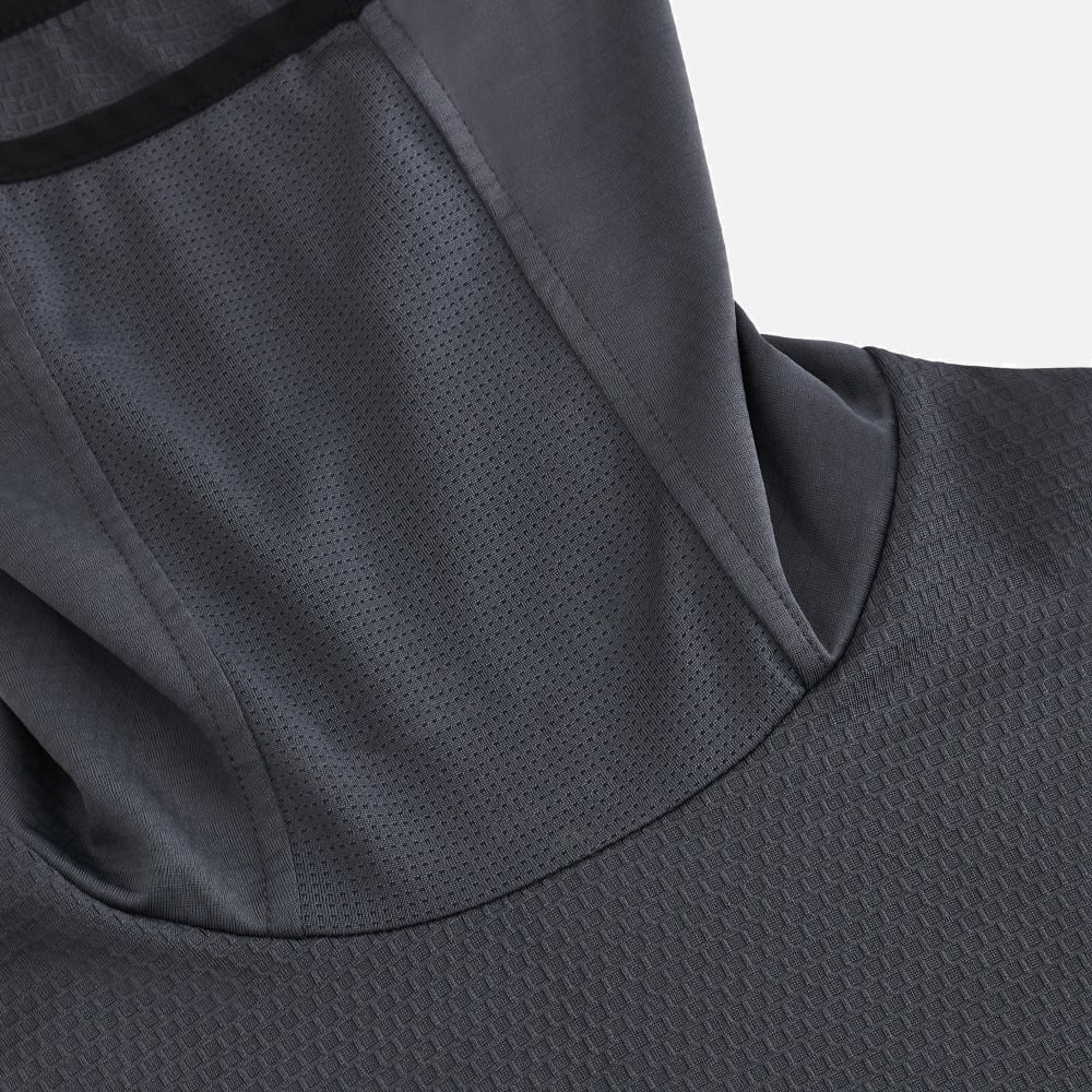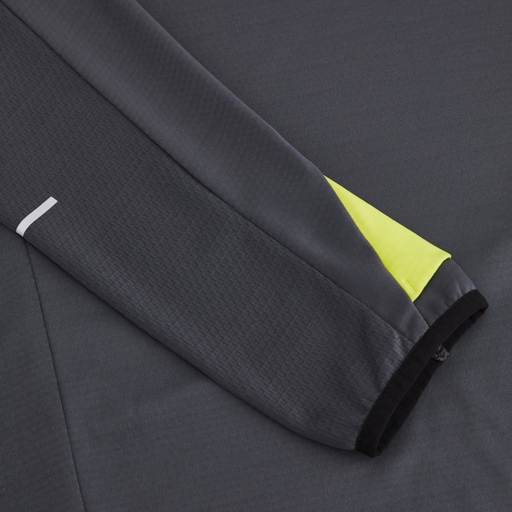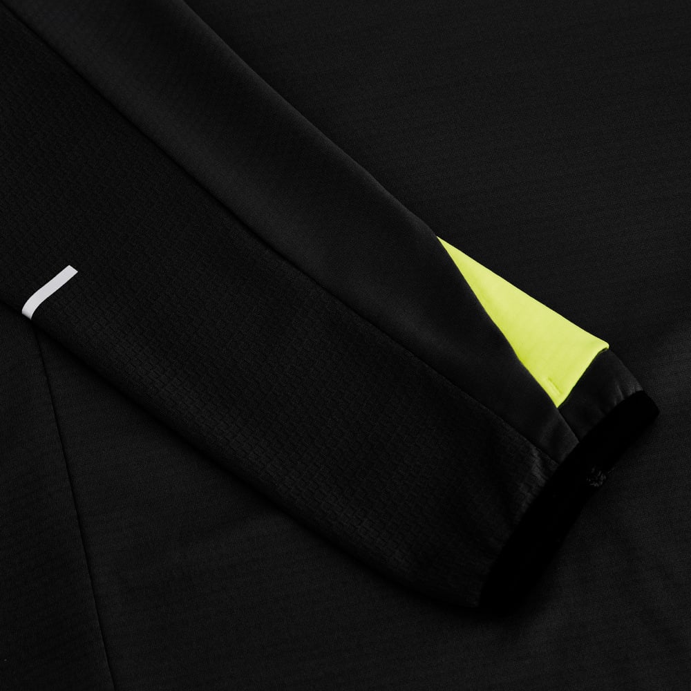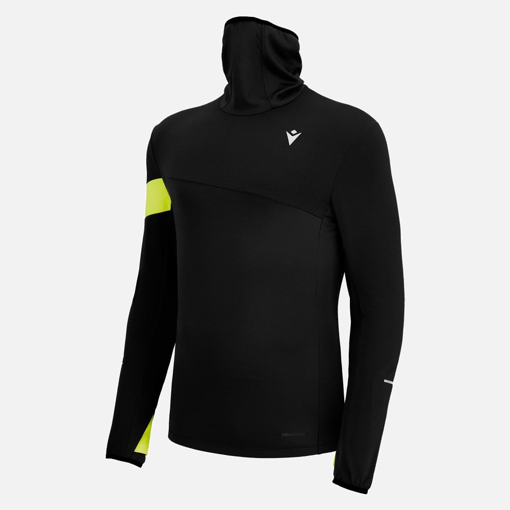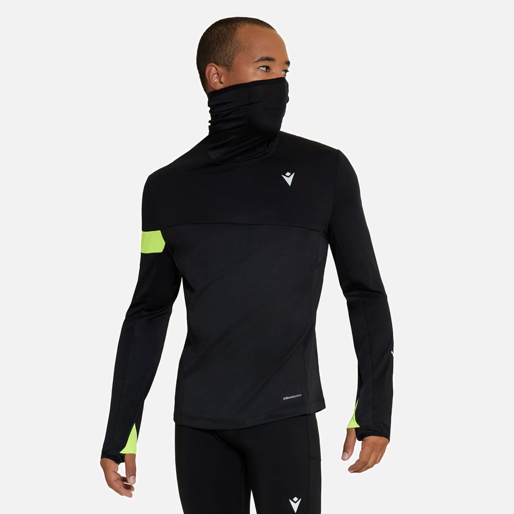 Get set for the coldest of winter days with the Edgar men's running shirt. Featuring a high collar in soft air fabric, it's perfect for chilly winter temperatures. The original printed fabric is enhanced with details like fluorescent yellow inserts and reflective silver transfers. The garment also comes with lycra finish details and thumb holes. The model is 1,80 m high and wears a size L.