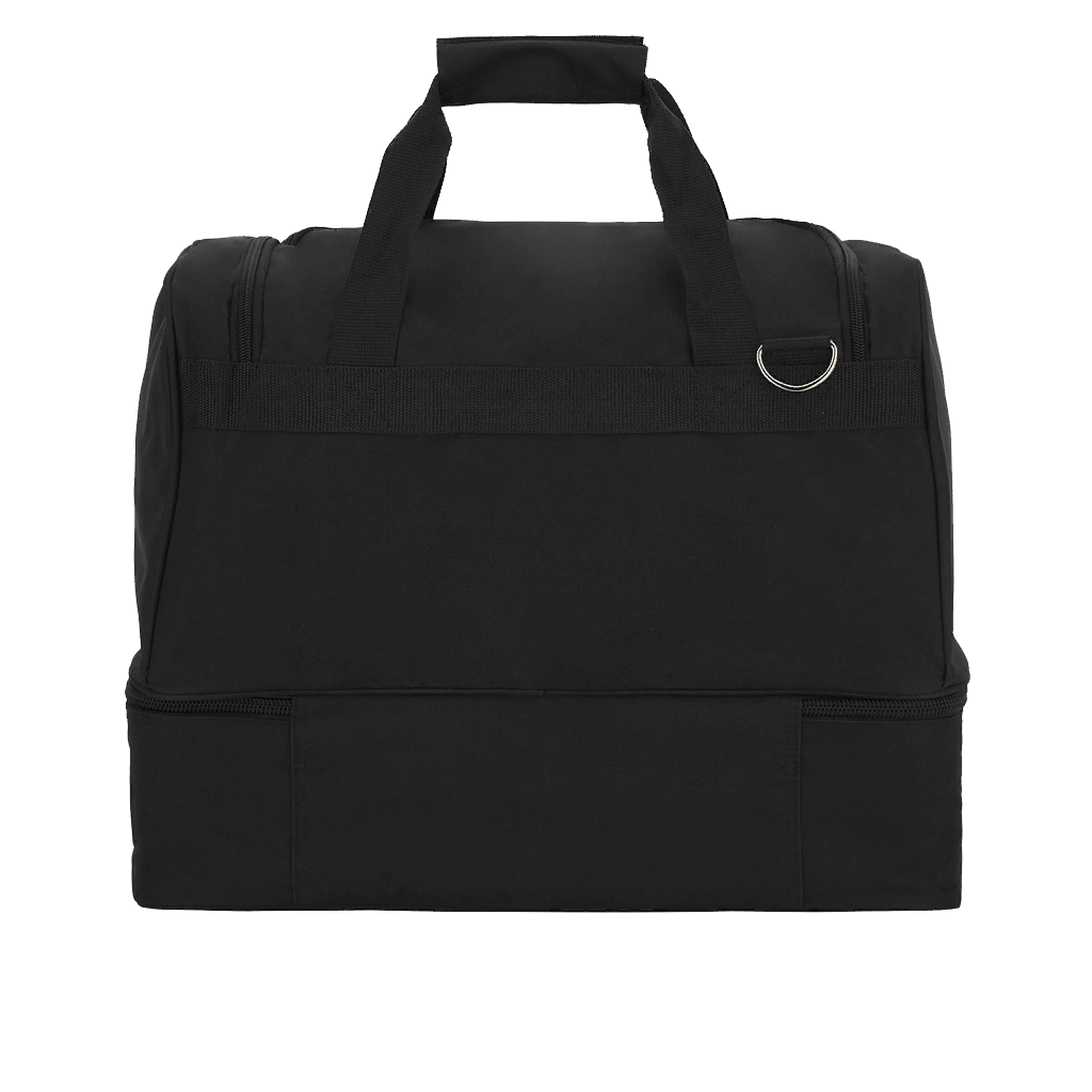 Bag with large central compartment and wide top opening for full use of all available space. Featuring a large front pocket with zip closure and a rigid shell bottom ideal for carrying shoes. Two handles with velcro wrap plus a shoulder strap for carrying.