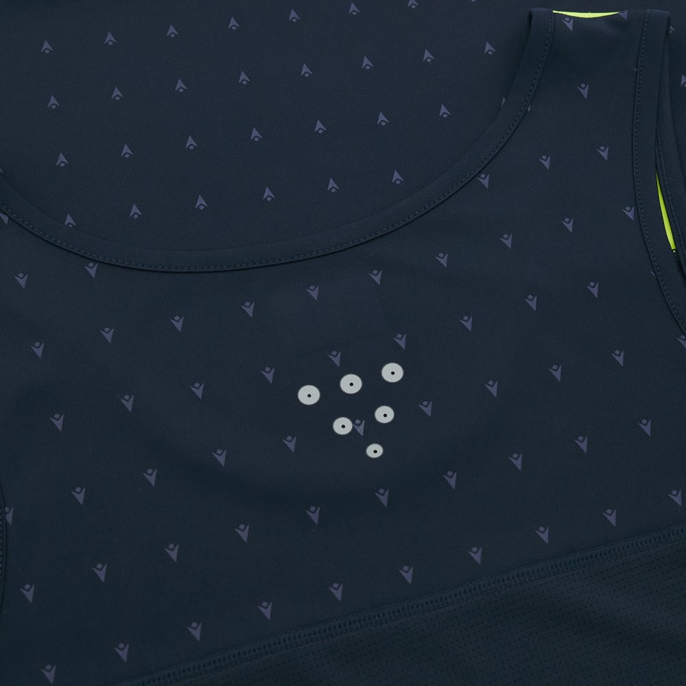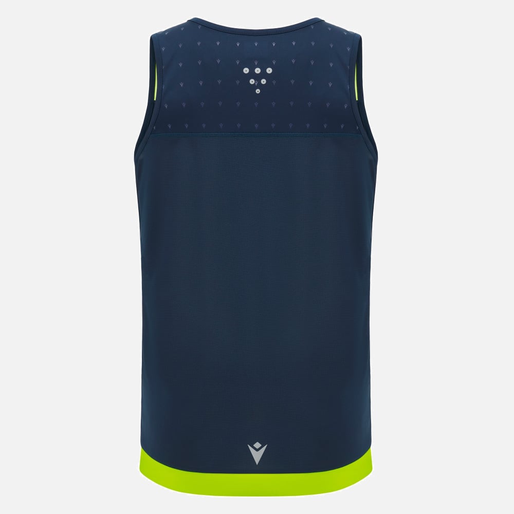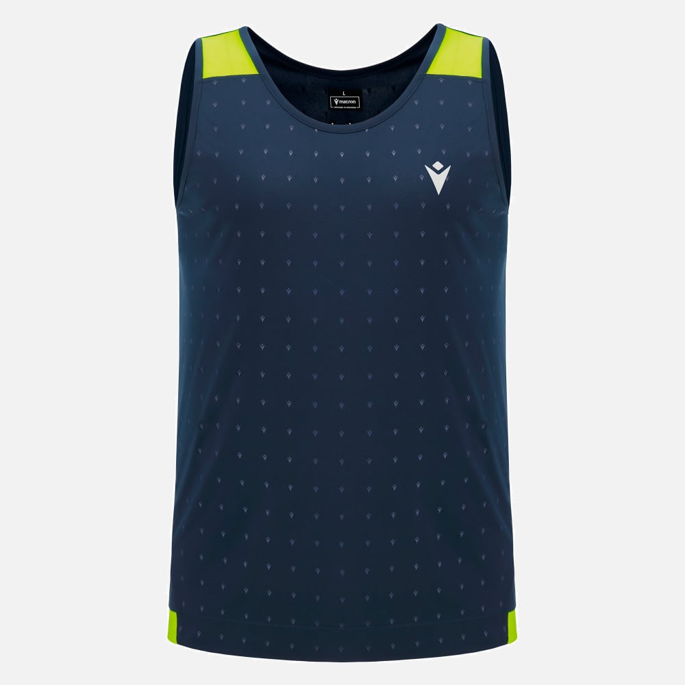 The Gervais men's tank top is designed for the hottest training sessions. Thanks to the technology of the fabric it is made of, it allows for excellent freedom of movement while offering maximum comfort. The light mesh back ensures continuous breathability keeping the body cool and dry. The reflective blue print, together with the reflective inserts, makes it possible to wear the garment even in the darkest hours of the day. This item is part of the new reflex package, where technology meets fashion in a perfect blend of design and function. The model pictured is 1.84 m tall and wears a size L.