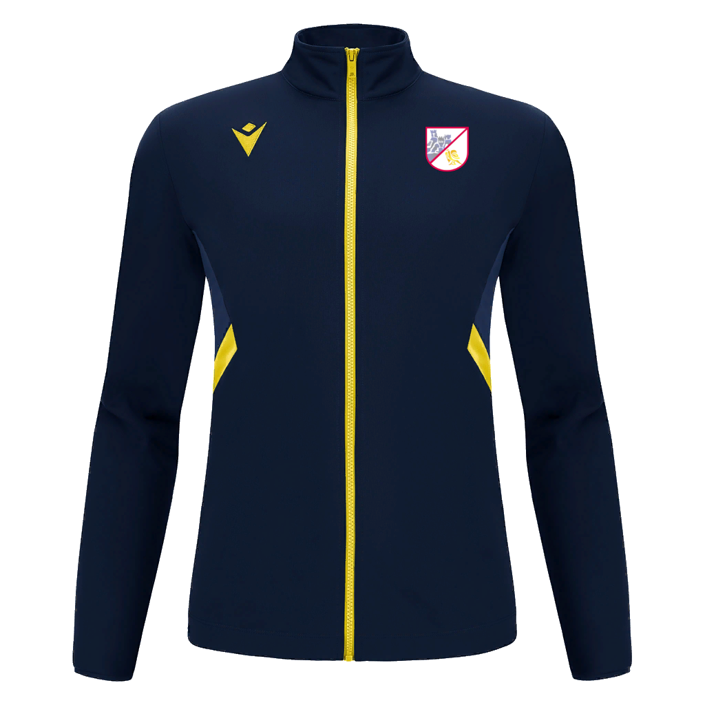 Travel top in Polydry fabric featuring a full-length die-cast central zip complete with a zip pull with the rubberised Macron Hero. Large side pockets with a reversed nylon zip. Featuring lycra cuffs and a drawstring bottom for adjustment of fit that ensures maximum comfort.