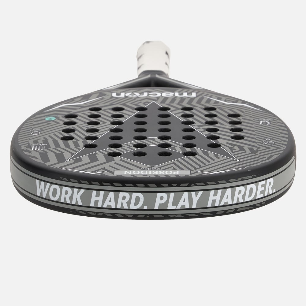 Macron presents the Poseidon Shadow II Premium padel racket. With its eye-catching design in blue and grey, the racket is designed for those with an attacking style of play who want to unleash power shots.