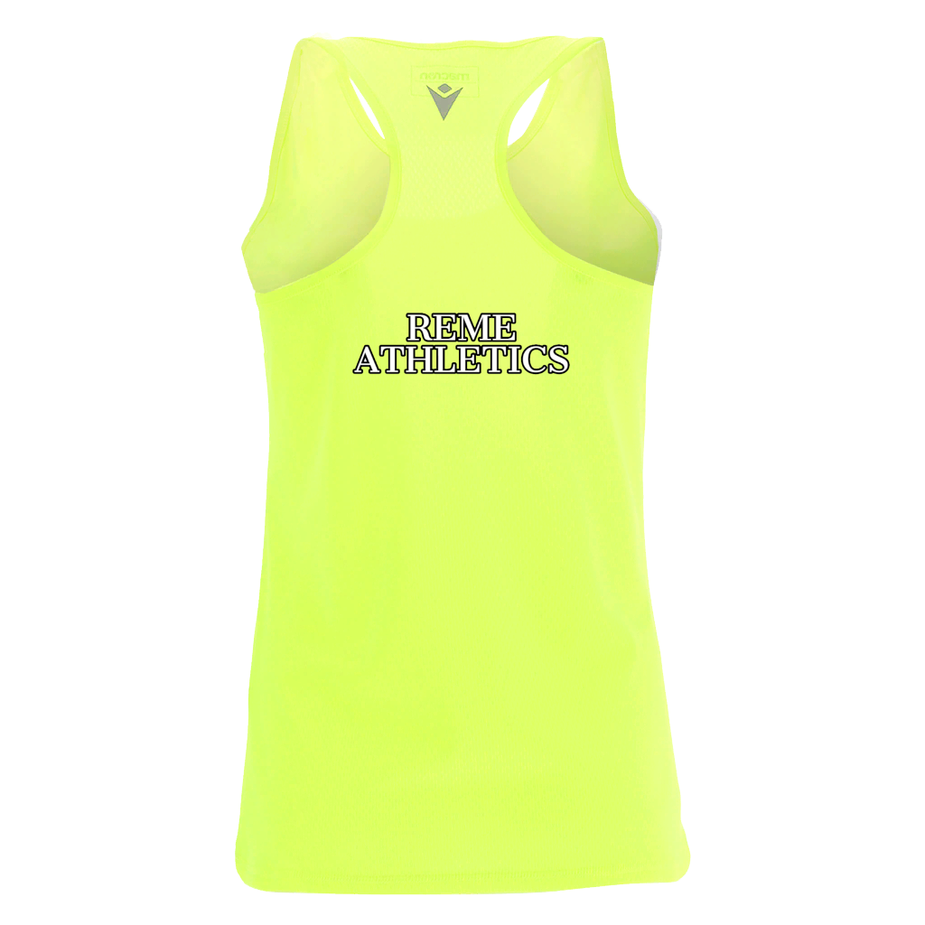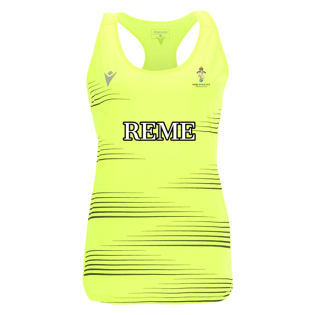 Women's Running singlet in light, comfortable Zephiro fabric with 3-thread flat-lock seams for minimum rubbing. Back in light micro-mesh for optimal ventilation. Reflective Macron Hero logo on the front and back for greater safety on the road. Optical dye-sub shaded design.