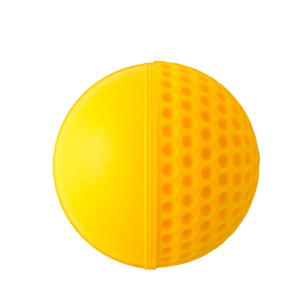 It has dimples on one side and is smooth on the other allowing for swing. Ideal for batters to practice against the swinging ball, but all good for bowlers so they learn how to training and control a ball that swings.