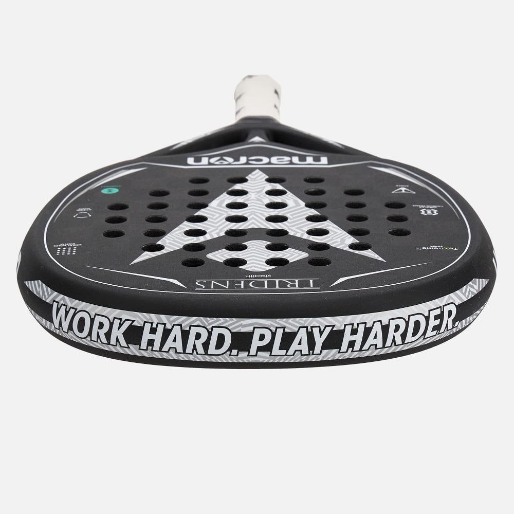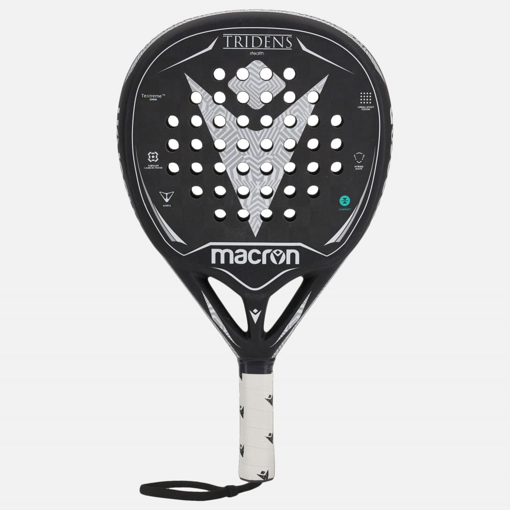 Macron presents the Tridens Stealth Pro padel racket. Featuring stylish design in shades of silver and black, Tridens is the ideal weapon for those with an attacking style of play who want precision control of the ball.