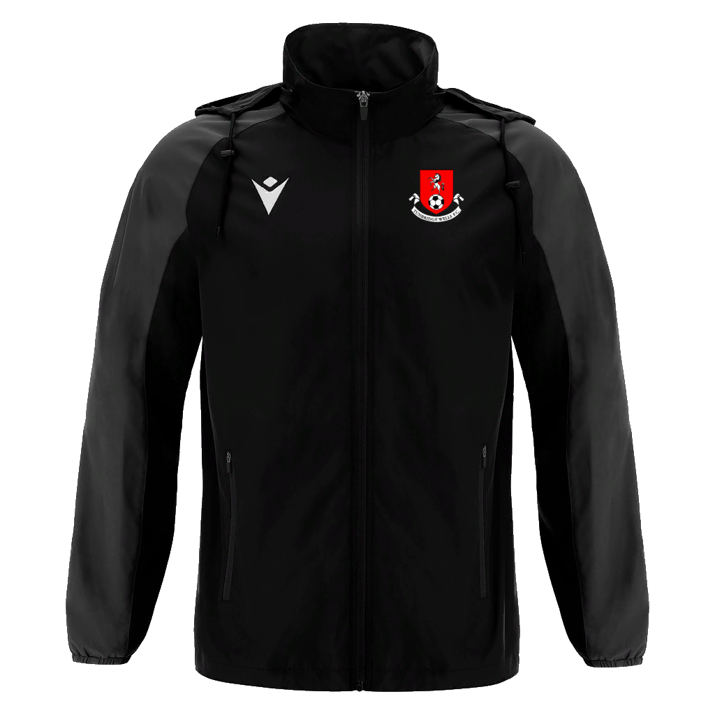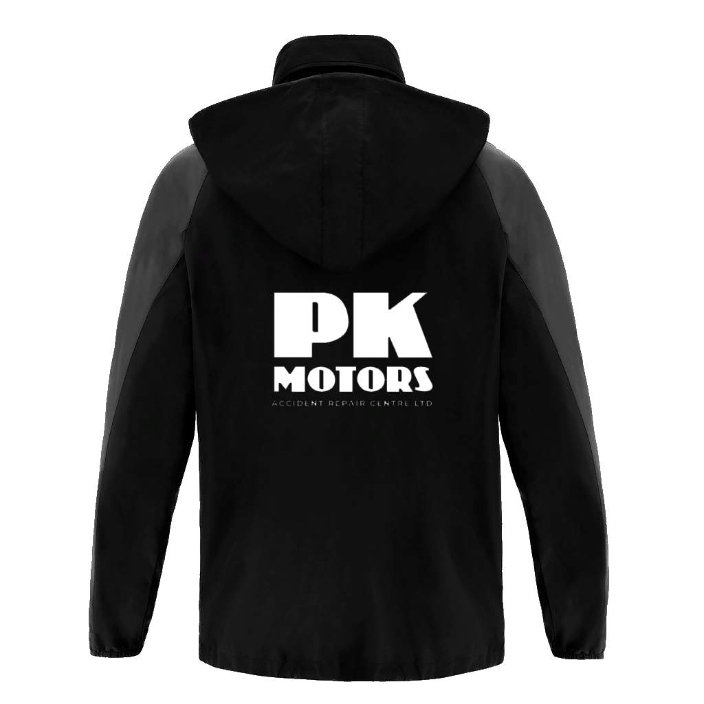 Jacket in water-resistant fabric with mesh lining, waterproof and breathable at the same time. Full-length reversed central zip in nylon, with auto-locking slider. Side pockets with zip closure. Hood packed in collar, elasticated cuffs and drawstring bottom. Tone-on-tone inserts on sleeves.